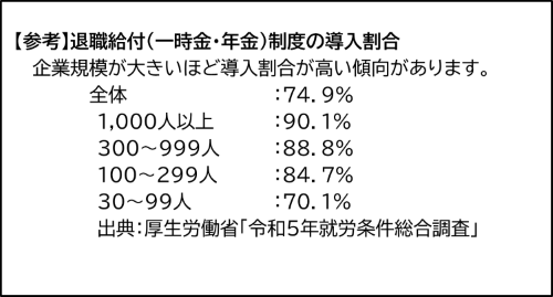 退職金制度は、小規模企業でも約7割が導入している制度であり、未整備の場合は採用活動において不利